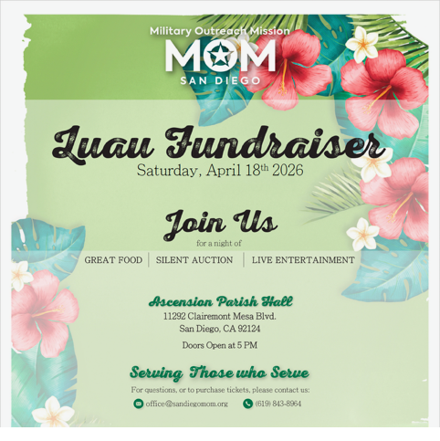 April 18, 2026 will see a gathering of those who love a Luau. We’re planning for great food, Hawaiian style, fantastic silent auctions and superb entertainment. All we need is you! See our flyer for location and time. At the bottom of the flyer are QR codes for tickets, tables or donations. Interested in becoming a sponsor?